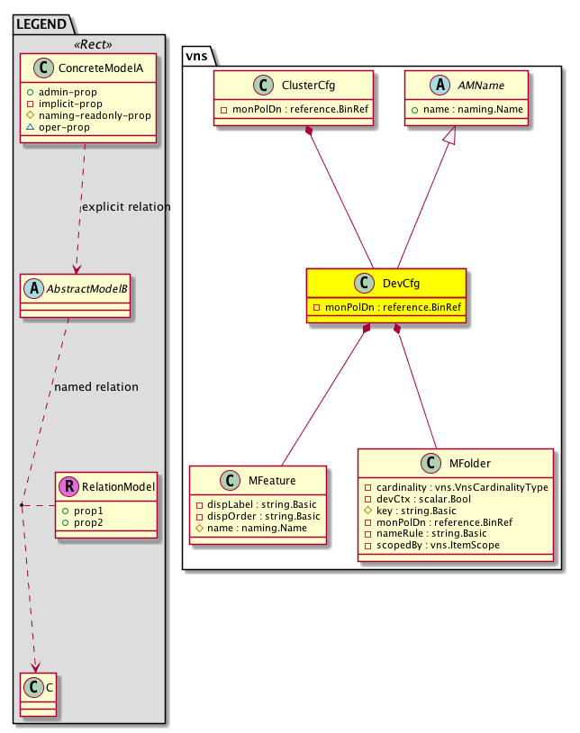 vns:MFolder The meta folder information. The model utilizes a generic configuration consisting of MFolders and MParams. This allows the configuration to be specified as a hierarchy. |