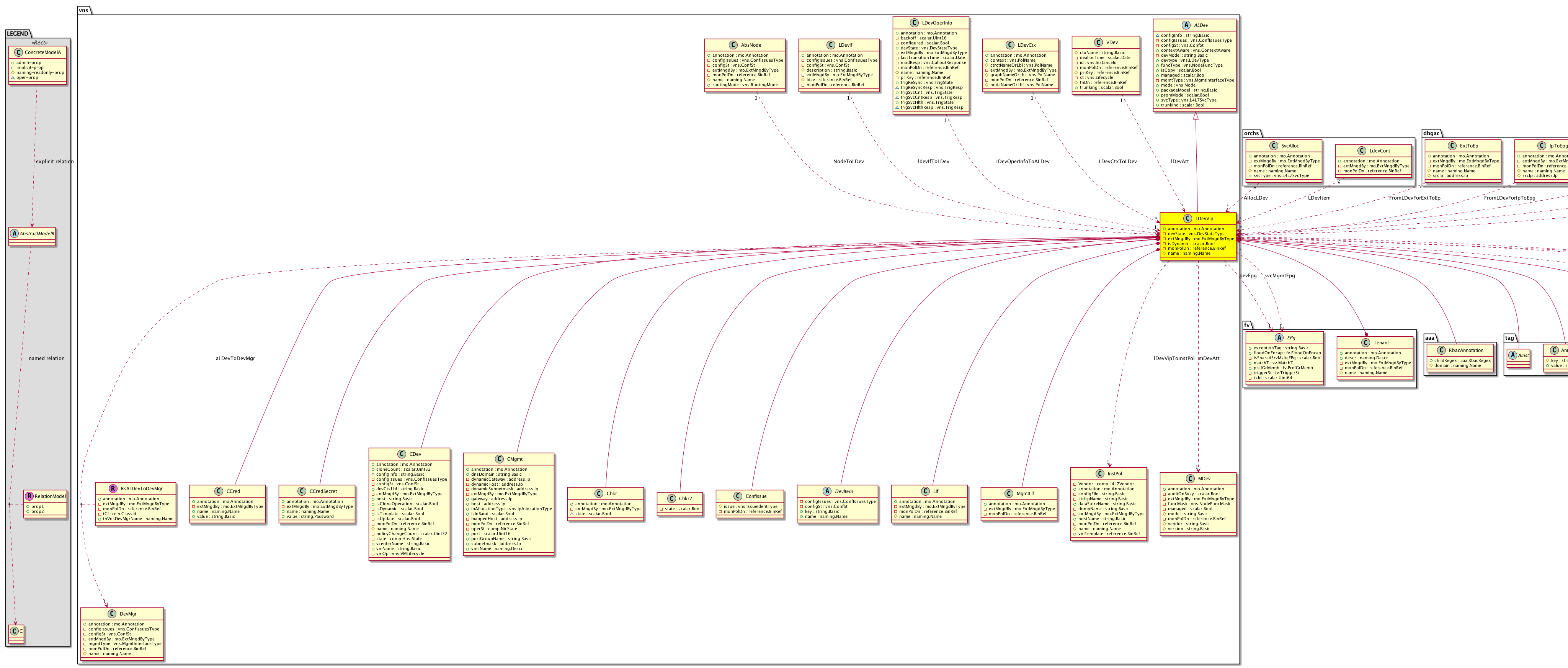 vns:DevItem An abstract class used to represent the concrete classes that store configuration information for concrete device association and that represent a configuration parameter for the service device. |