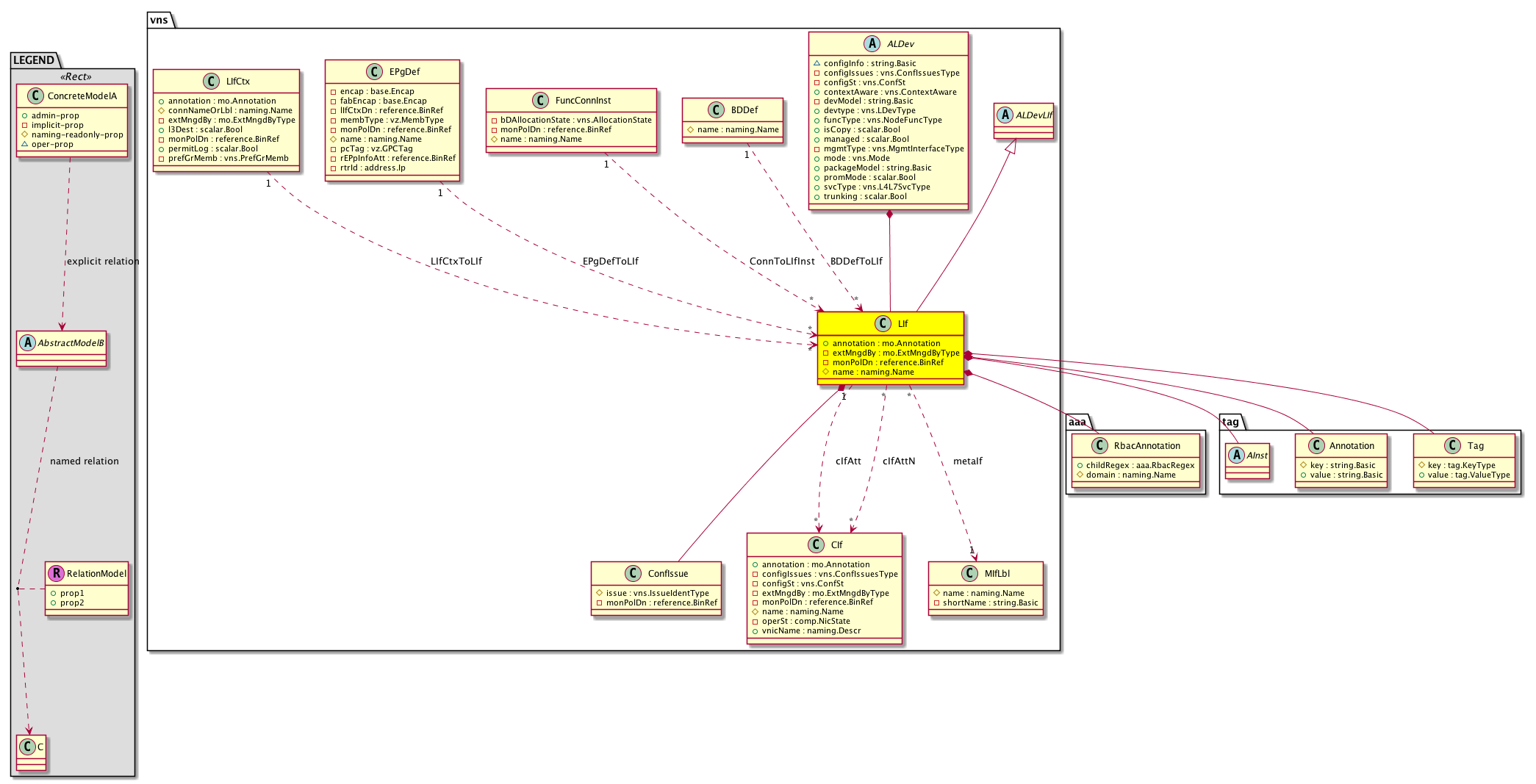 Relations: vns:RsCIfAtt, vns:RsCIfAttN, vns:RsMetaIf, vns:RtBDDefToLIf, vns:RtConnToLIfInst, vns:RtEPgDefToLIf, vns:RtLIfCtxToLIf,
