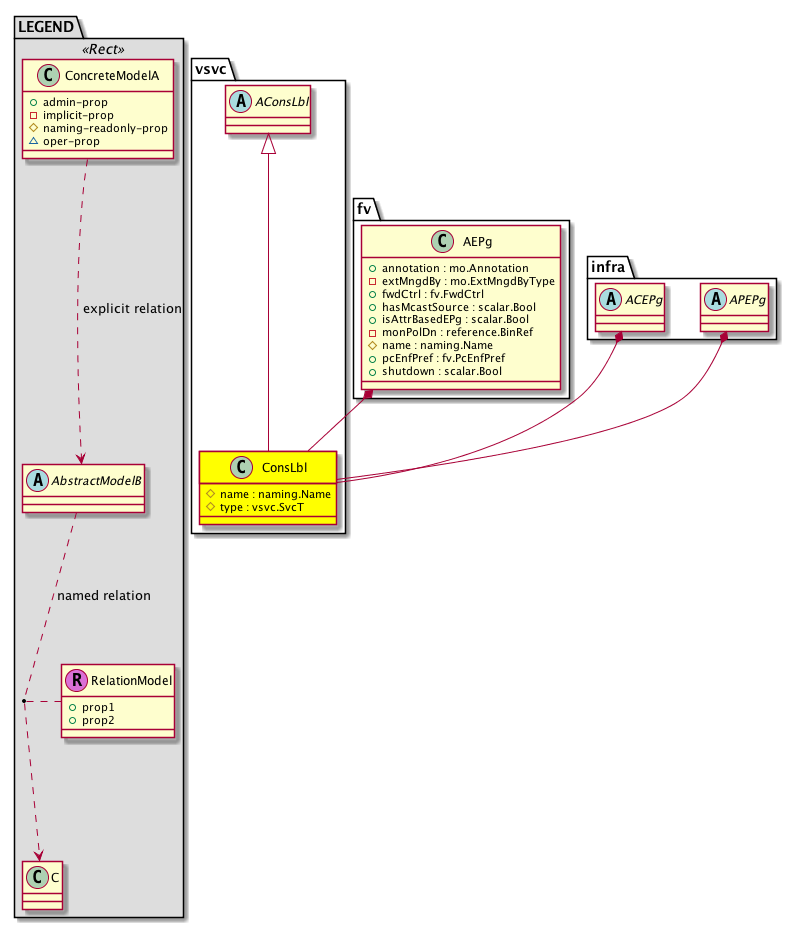 infra:ACEPg An abstraction of the infrastructure client endpoint group. The client endpoint group represents a set of hypothetical client endpoints attaching to the network. |