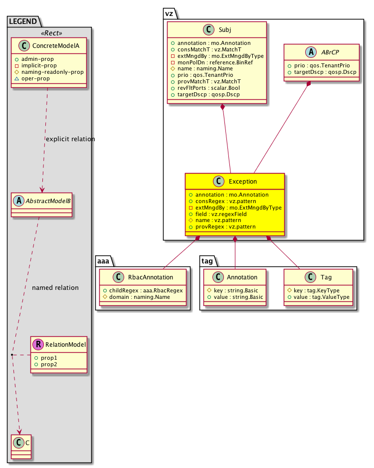 vz:Subj A subject is a sub-application running behind an endpoint group (for example, an Exchange server). A subject is parented by the contract, which can encapsulate multiple subjects. An endpoint group associated to a contract is providing one or more subjects or is communicating with the subject as a peer entity. An endpoint group always associates with a subject and defines rules under the association for consuming/providing/peer-to-peer communicati... |